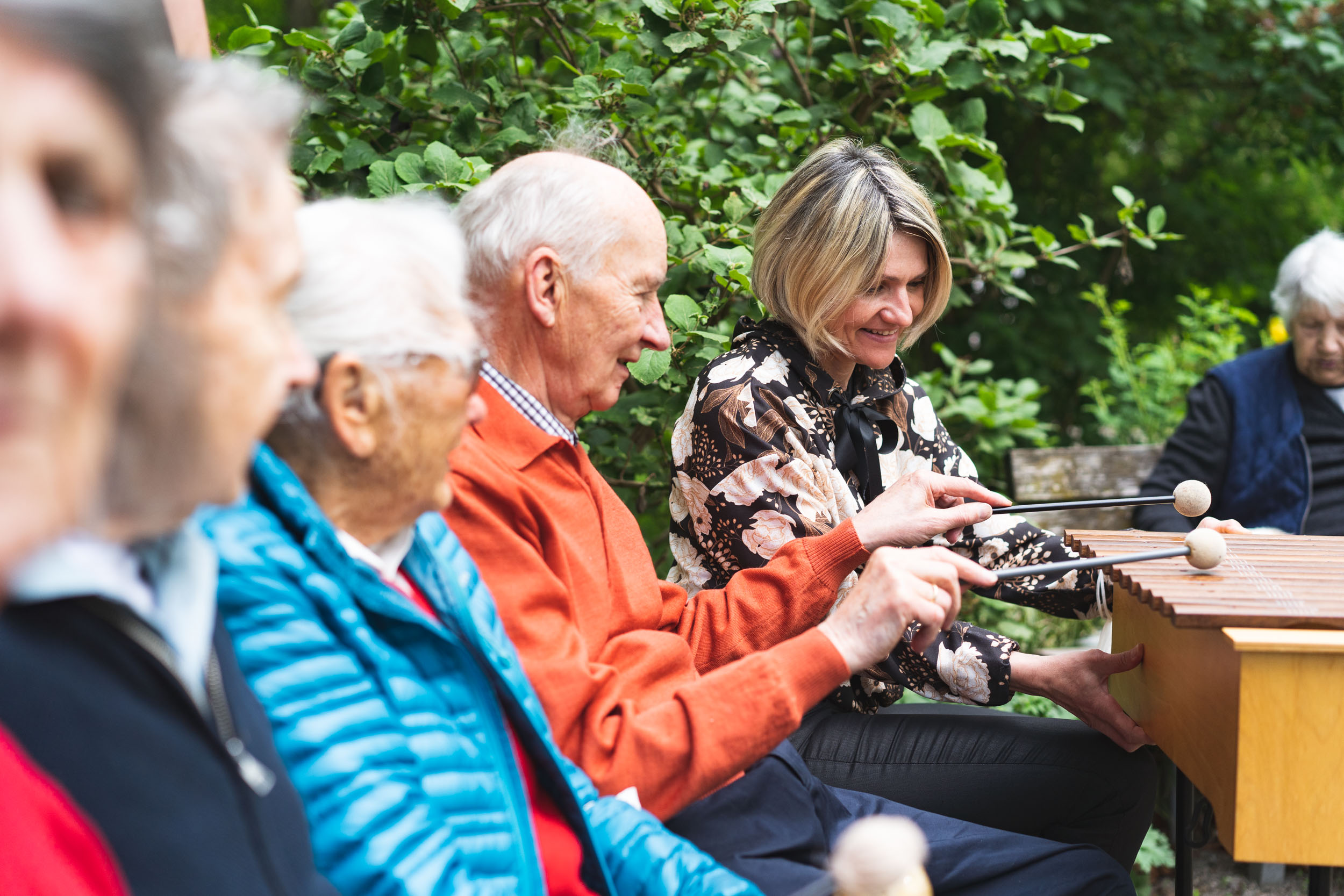 - Musik, Gedächtnistraining, Gespräche, Spiele und leichte Gymnastik haben einen hohen Stellenwert im täglichen Ablauf.